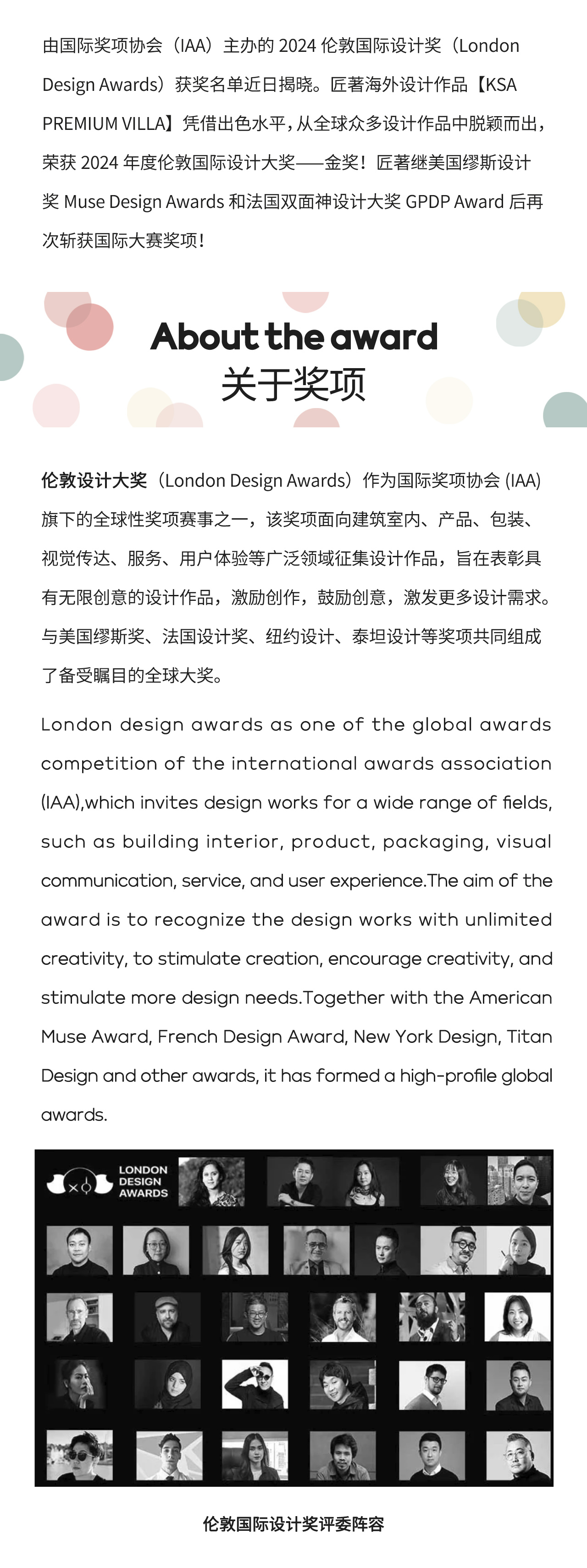 荣誉| 匠著【KSA PREMIUM VILLA】斩获IAA伦敦设计大奖-金奖!