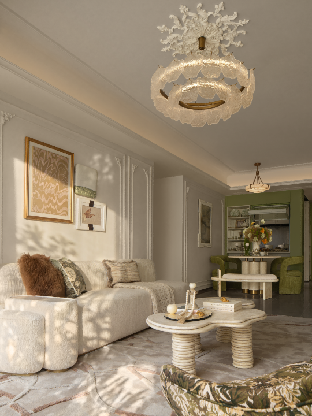 空间中多处装饰将法式热烈的浪漫情调与春日的繁盛景致做了呼应,并融入了春日万物舒展的松弛感。这份精致的审美意趣满载着主人的生活态度,温柔透视出主人对诗意栖居的执着追求。
