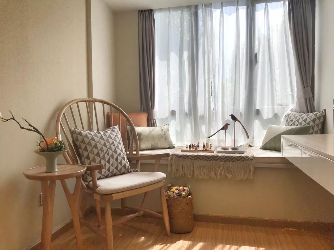 铺上飘窗垫,摆上舒适的靠枕,精致的茶具及充满禅意的干花,日薄西山之时,慵懒倚靠在这精心布置的飘窗上,于浪漫温情的氛围里,让心情随时光泛起涟漪。