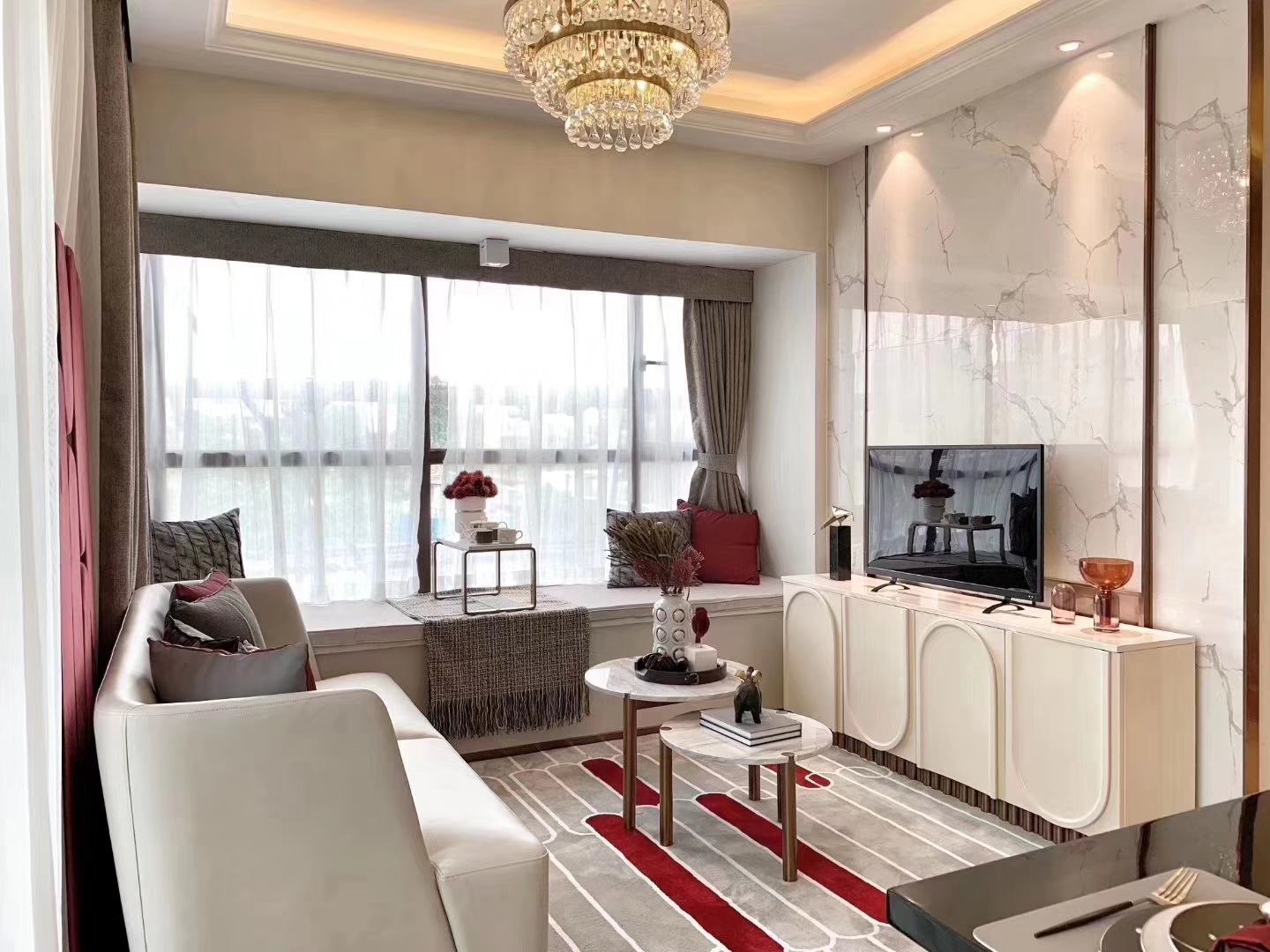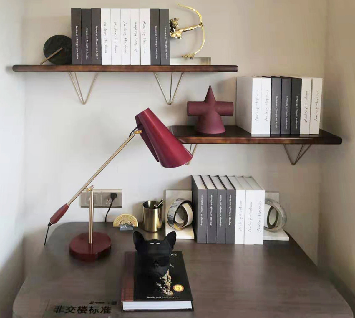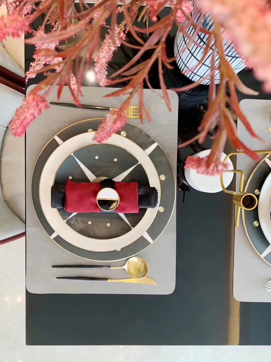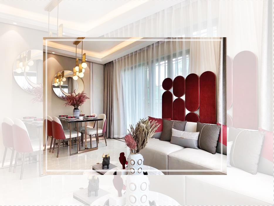 杰斯特红,色泽略深的红色,比常见的红色带增加一点点的紫调,添上一丝独特的魅力。造型考究的家具,细节中透露出不俗品味,配上艺术性十足的摆件,让人流连其中,忘记喧嚣。整个空间想营造出一细节感丰富的单品,以艺术生活为基调,营造一个品质精致的生活。