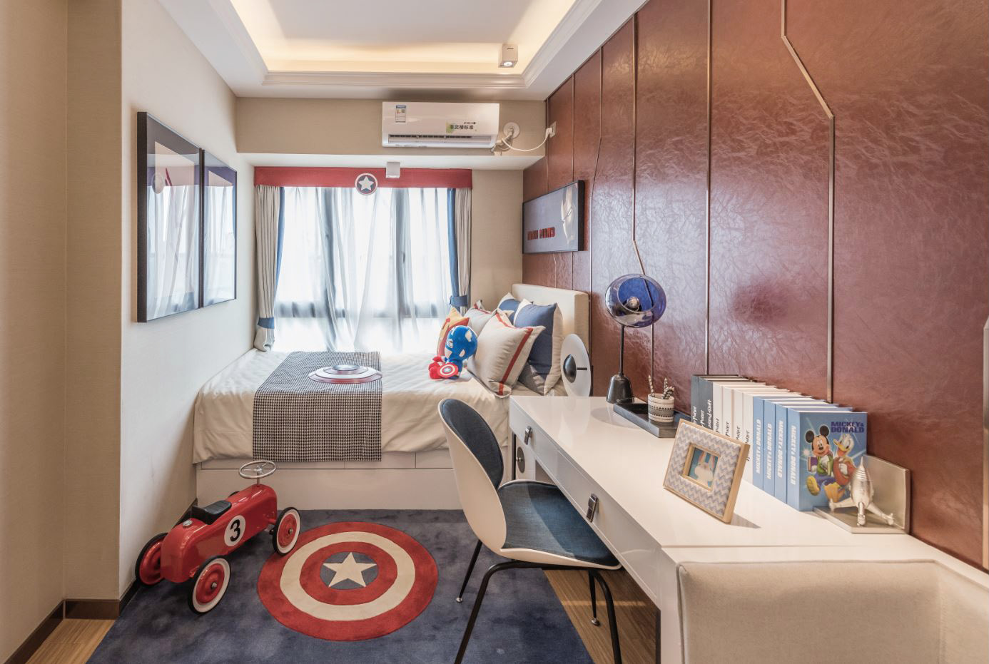 ▲儿童房的床靠窗布置,腾出更大的活动空间,迎合儿童爱玩好动的天性,同时旁边还特地设置了一个小巧的两位沙发,可以让玩累的小朋友跟小伙伴一起休息。