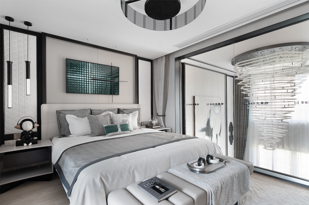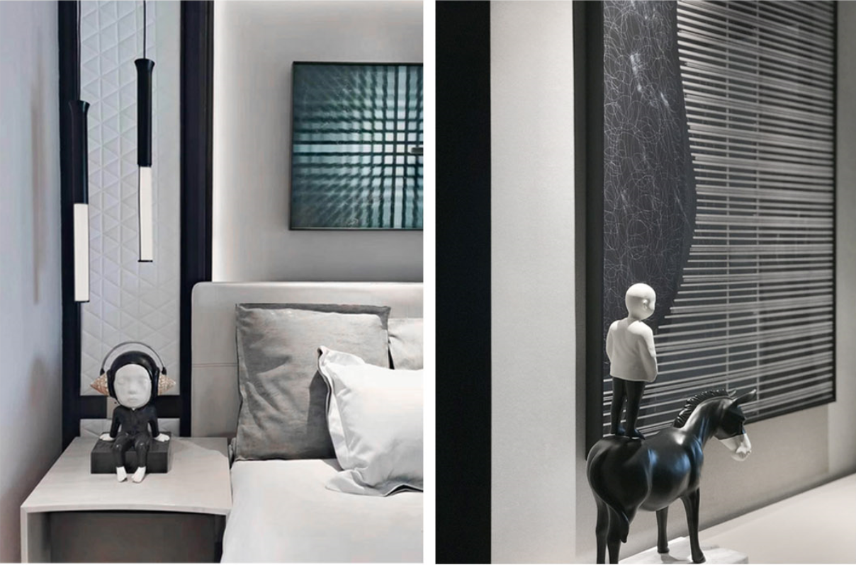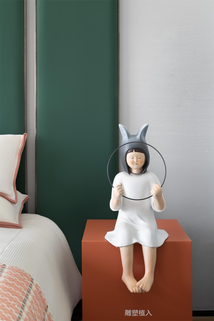 现代家庭生活中,家庭成员拥有各自兴趣爱好和独立的生活状态显得格外重要,主人房以精心搭配的布艺、私人定制的“冥想雕塑”来达到温暖平衡的状态。
