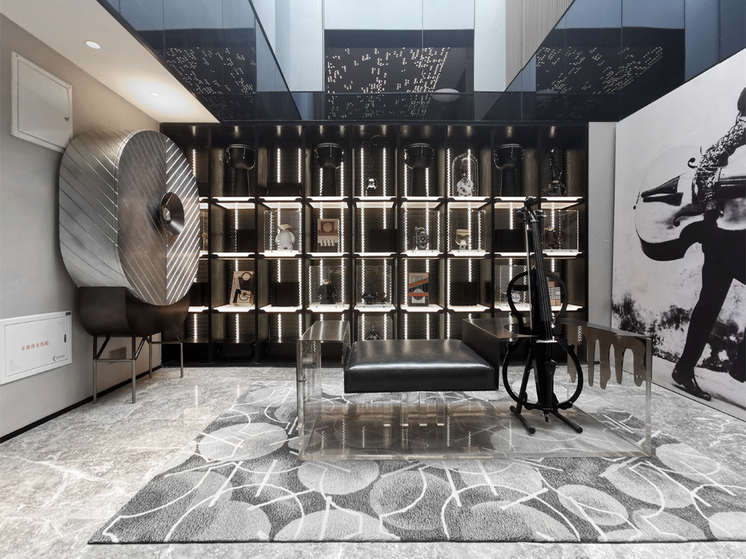 艺术是相通的,地下室作为情绪与兴趣同时释放的空间,卸下伪装,抒发出内心的激情与热血,不同的颜色赋予了空间不同的象征意义,五颜六色的光芒,仿佛源源不断的散发出一种力量,一场属于自己的演奏会华丽上演。