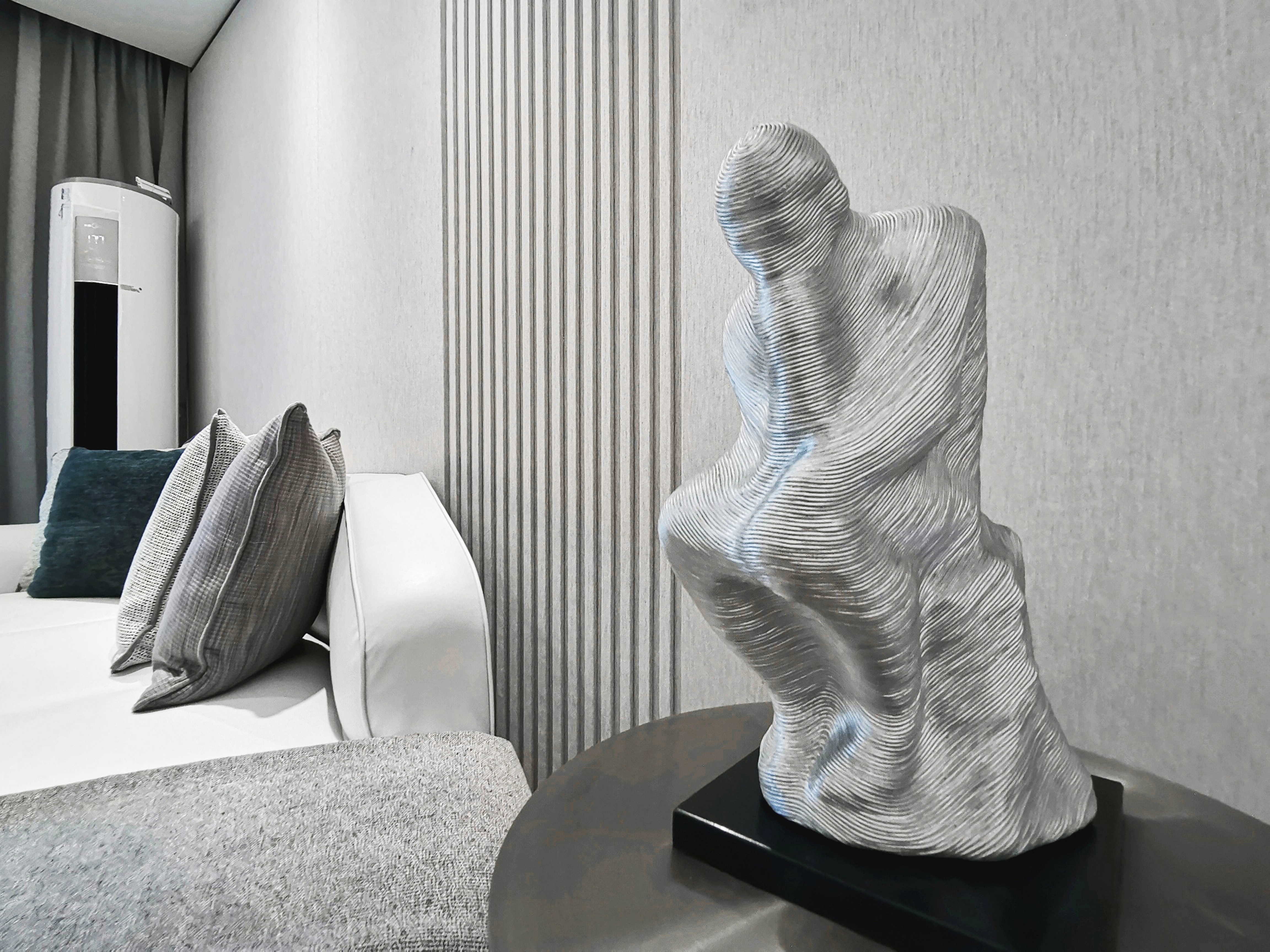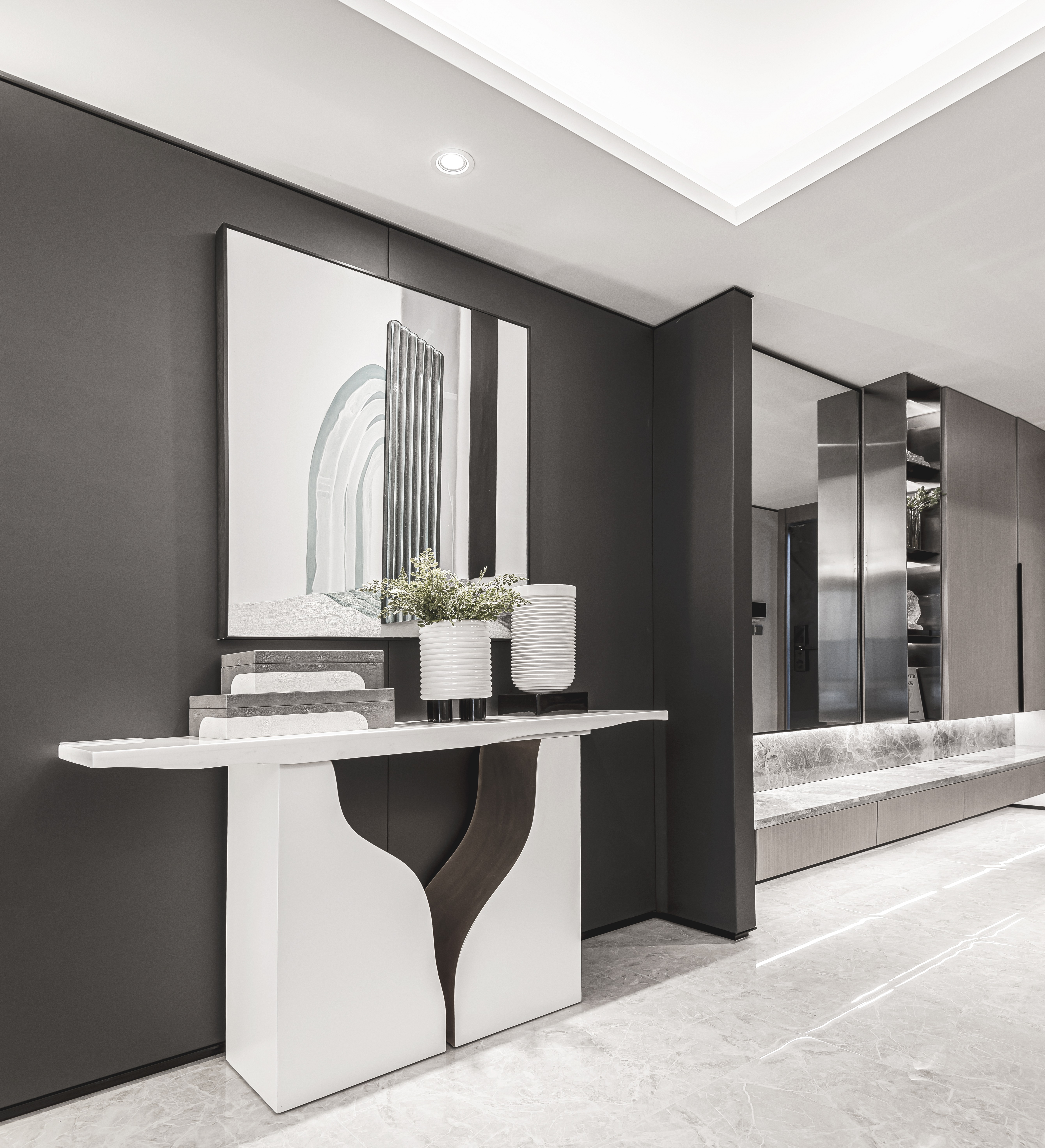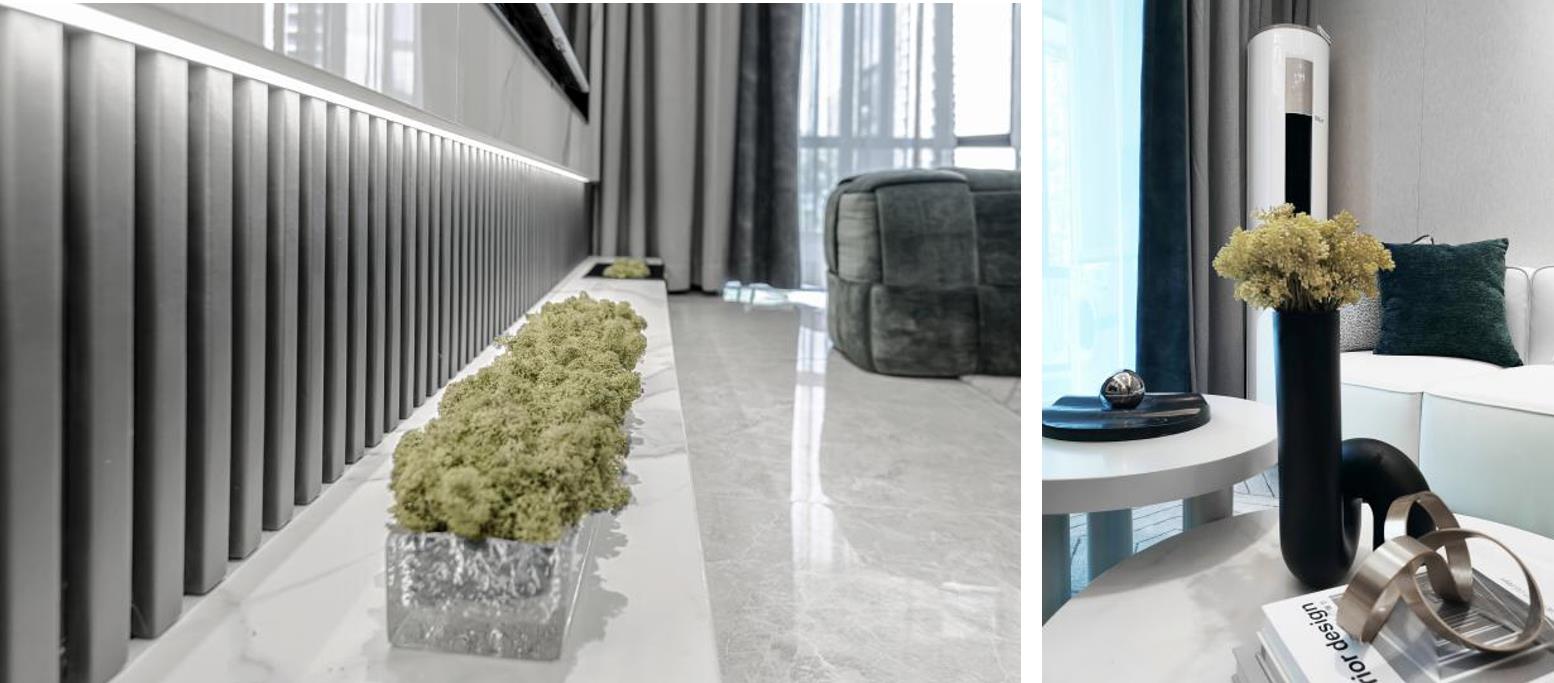 本案以现代风格打造,讲究灰调的和谐过渡,传达一种超然的体会与感受,融入于居所,而又不止于居所。