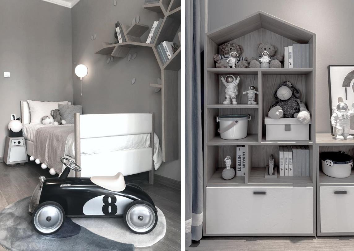 ▲ 童趣空间:树形书架,趣味边几,让空间更赋有活力。
