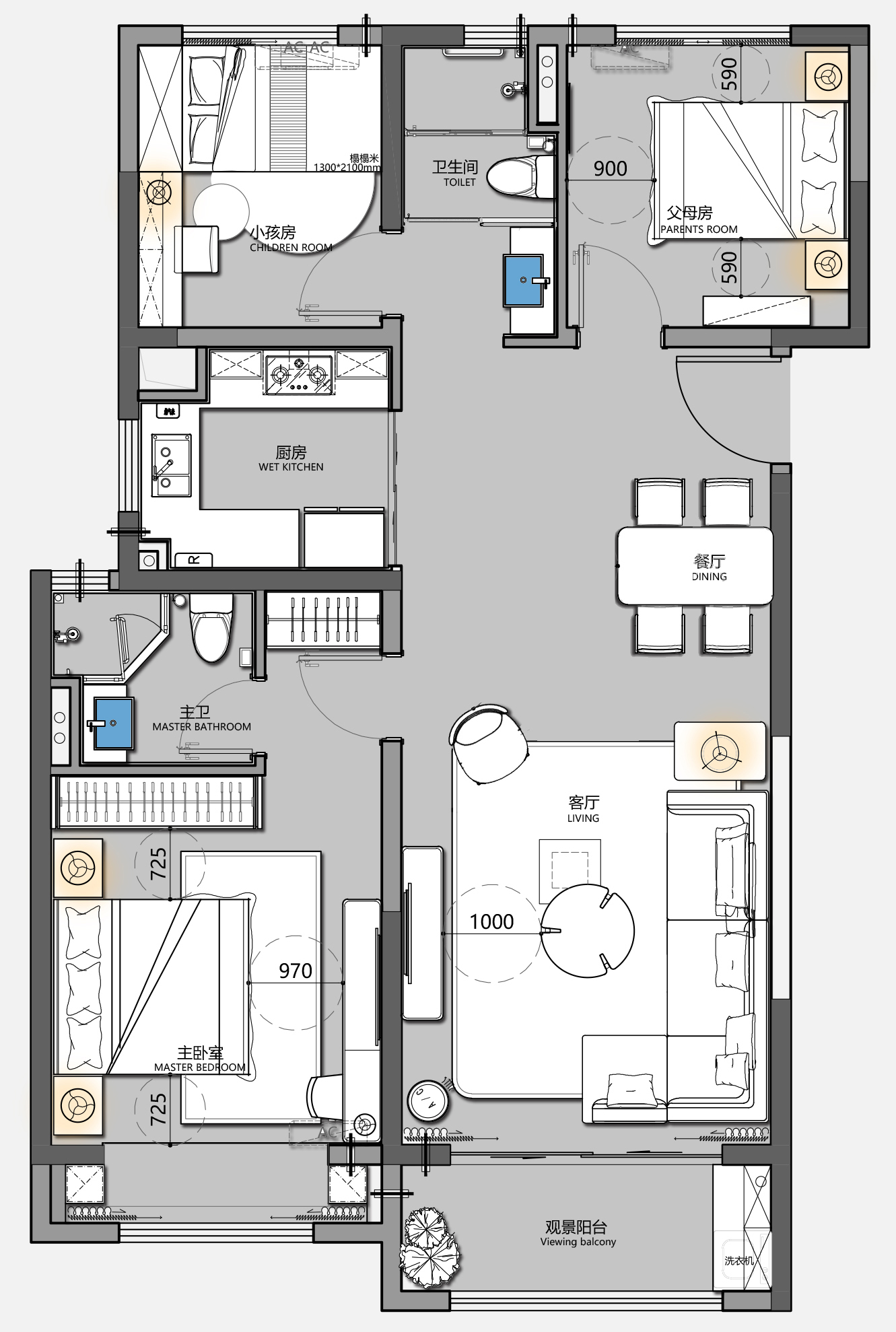 空间上设定为一家四口的居住环境